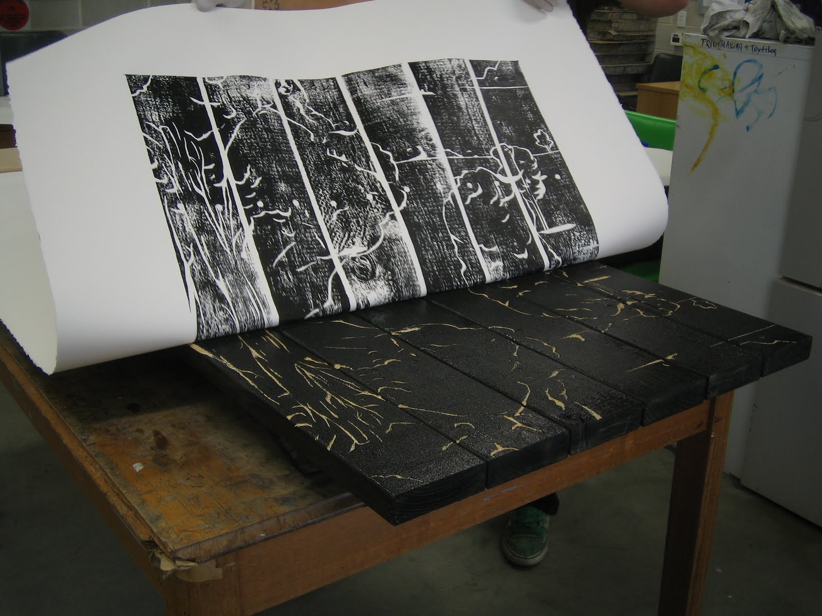 My contribution to the project is a series of picnic tables that have been altered and placed in both Victoria and Whitmore Squares. They have images of significant Australian paintings from the Art Gallery of South Australia’s collection carved into their tops, which double as printing plates. For me, this project is an exploration of the values placed on cultural residues such as graffiti. I find the scratchings on various public furniture to be as engaging as some of the greatest paintings that are in major institutions. I have adapted images from Roberts, Gould and Boyd, each of which portray particular notions of Australian colonialism and social identity that can still be reflected upon today.