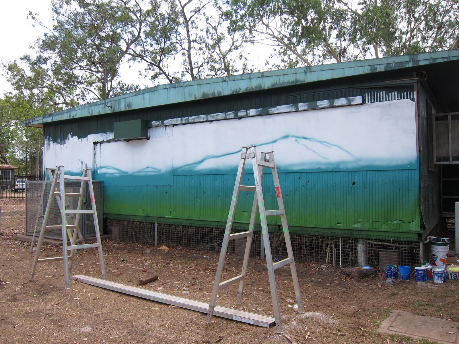 Here are a few shots of hanging out with the students at Angurugu, sharing some stencil skills and gearing them up to paint a mural in their school.